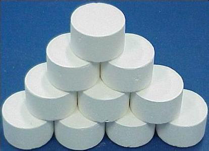 游泳池水消毒:33片/m3水 直接投入水中使其緩慢溶解,使余氯含量為0.3~0.5mg/L,作用60-90分鐘